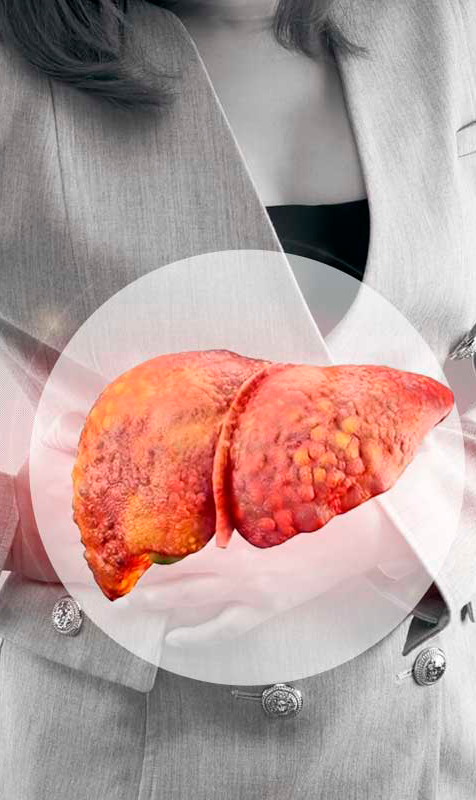 Em casos graves, a Gordura no Fígado pode evoluir para cirrose e insuficiência hepática.