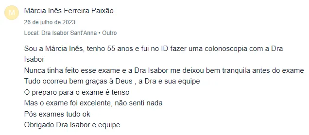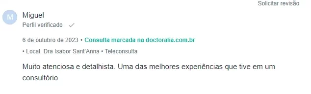 Veja o que alguns pacientes falam sobre a dra. Isabor: